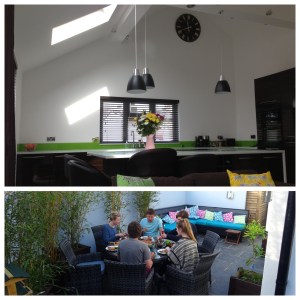 February 2013 saw the creation of the temporary kitchen in our bedroom, whilst we had relocated ourselves to the recently vacated “Jamie’s room”. It’s fairly normal to set up a functional kitchen space for a short period of chaos in order to feed yourself soup & toast or the odd pot noodle. Matt’s optimism was balanced out by my realism, and we agreed that we were likely to need this set-up for a few months at least. In order not to drive ourselves completely crazy, and still be able to provide some sense of family normality for Soph, we assembled a fully functioning kitchen, complete with full size electric double oven, fully plumbed dishwasher and washing machine, and more worksurface and cupboard space than we had in the old one. To be honest, compared to the old one, the temporary one was a massive upgrade. Glad we invested the time and energy into it though. Our “short period” lasted 10months!